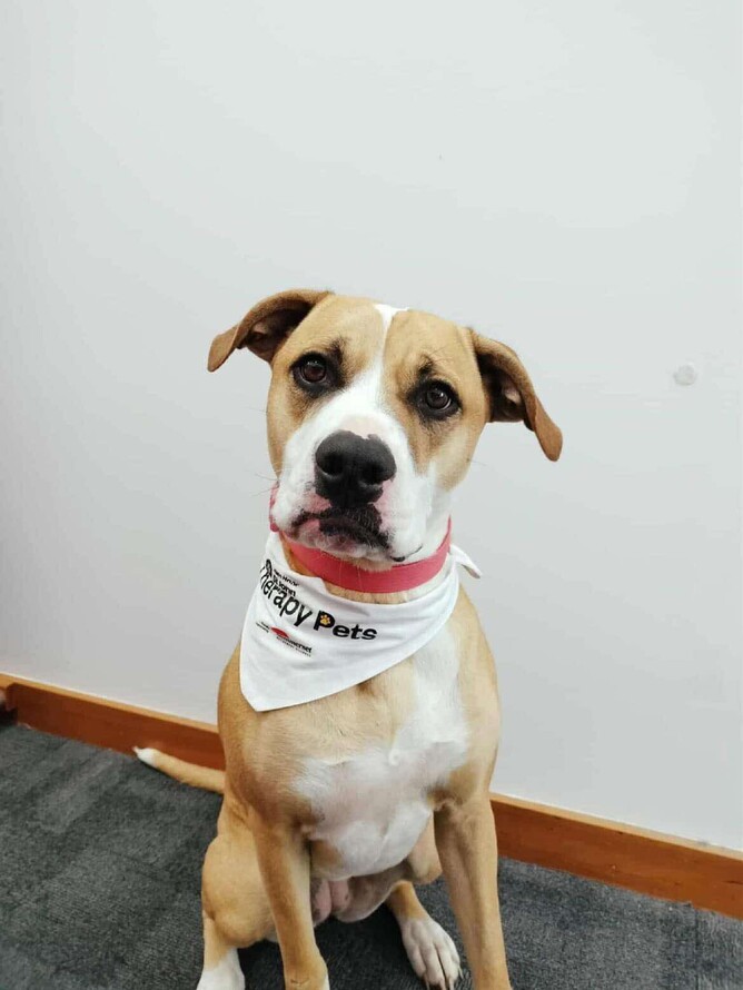 Karen adopted the gorgeous Pumpkin off us. And she thought that we would like to see how she is getting on. Karen says she is such a special girl. She's 19 months old now and is a St John's Therapy Pet, sharing her love with children at Parakai and Helensville Schools. Such a pretty girl.